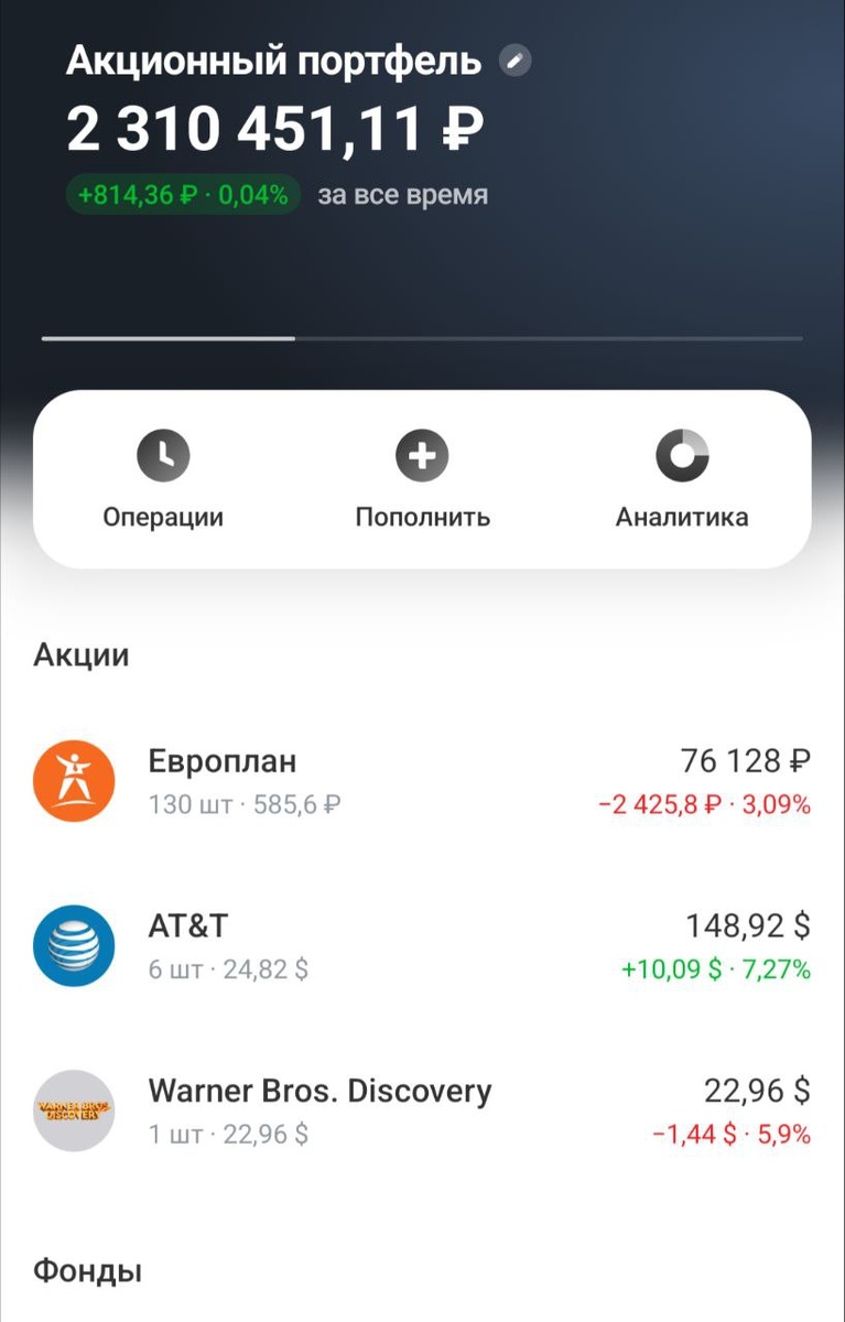 #Основной_Портфель Ситуация становится более-менее понятной. Проданы активы на необходимую мне сумму, даже немного больше. Остался только Европлан, который рекомендовал недавно дивиденды. Пока основной портфель трогать не планирую, до совершения сделки по ипотеке, ее, кстати, одобрили. Как все закончится буду заново формировать долгосрочный портфель. Сейчас не хочу им забивать голову. Облигации удалось сохранить.