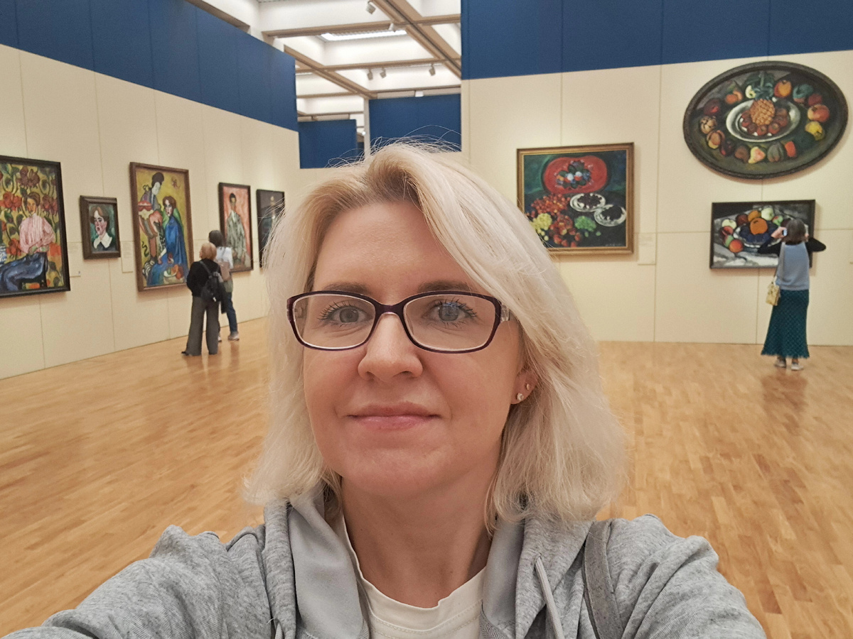 Первым я посетила Дейнеку, была очарована многими его работами, но когда я дошла до Машкова - Дейнека тут же померк и сдулся! Поэтому о нём в следующей раз, а пока покажу вам буйство красок авнгардиста и новатора Ильи Машкова.