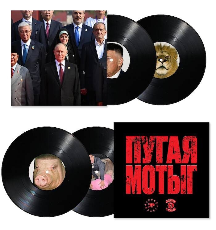 Хайп дня: Владимир Путин, Касымжомарт Токаев и другие президенты оказались на пластинке американских рэперов Jpegmafia и Danny Brown. Интересно? Перед тем, как читать дальше, предлагаю подписаться на канал, чтобы Вы не пропустили другие интересные публикации. Американские рэперы анонсировали виниловое переиздание, на обложке и яблоках которого изображены президенты разных стран, включая российского и казахстанского лидеров, а также мемная картинка Дональда Трампа. Название альбома 2023 года перевели на русский язык и нанесли на конверт с ошибкой, и теперь оно звучит так: «Пугая мотыг». Ну ладно, пусть будут испуганные мотыги. Альбом в новом оформлении продают за грязные зеленые бумажки не только на виниле, но и на CD, аудиокассетах. Например, цена винилового издания из 4 пластинок = 60 грязных бумажек, а компакт-диск - 25 бумажек. Для обложки авторы переиздания использовали фото, сделанное в сентябре 2025 года на военном параде в Пекине. На лейбаке одной из пластинок есть мемный п