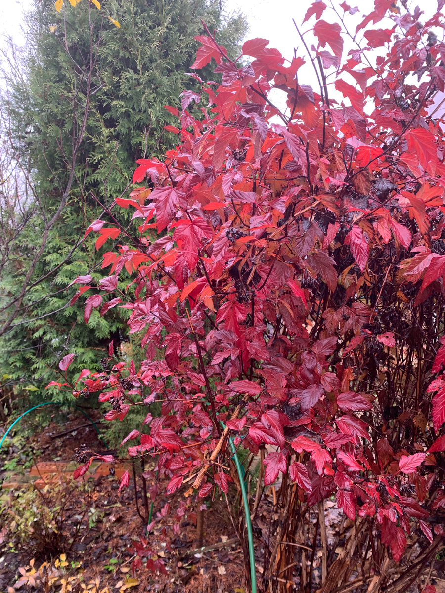 Одним из красивых и неприхотливых кустарников в своем саду я считаю пузыреплодник калинолистный Ред Барон. В 2020 году я начала большие изменения на дачном участке. В это же время приобрела несколько новых растений, среди которых был пузыреплодник. Весь участок раньше представлял собой огород со множеством грядок под овощи и клубнику. После сноса грядок стал разбиваться сад с различными кустарниками и цветами. Пузыреплодник сажала в ноябре, это довольно поздно для такого растения. Рекомендуется посадка за 30-40 дней до морозов, то есть лучшее время в сентябре. Справа от пузыреплодника посажены две спиреи, которые и сегодня растут в этом месте. Все молодые вновь посаженные растения я защищаю с помощью дуг и сетки от налегания снега. Совсем маленькие веточки кустарника с красными листьями сразу мне приглянулись, но тогда я не предполагала как быстро разрастается этот кустарник. Спустя пять лет на этом месте вырос большой кустарник. Цвет листьев на фото может измениться в зав