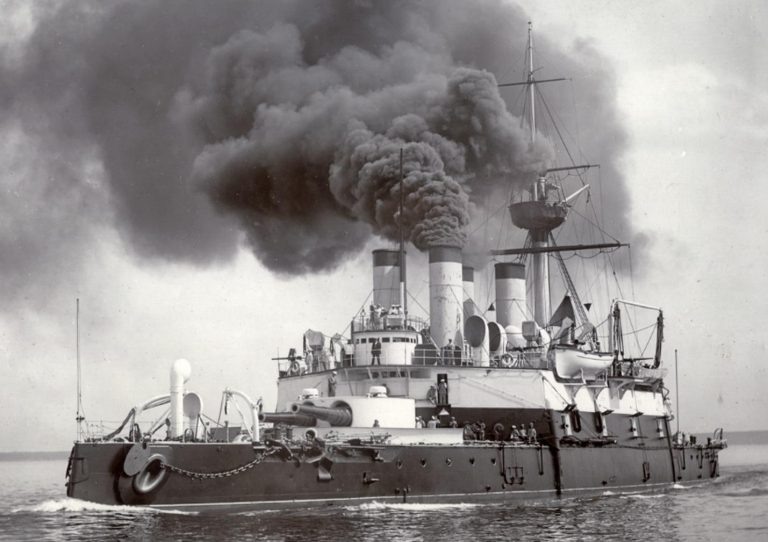 Вооружение корабля в конце 1904 года – 4-305х35, 8-152х35, 4-75х50, 14-47, 4 пулемета, 2-63,5 десантные, 6-381-мм т.а. (надводные).