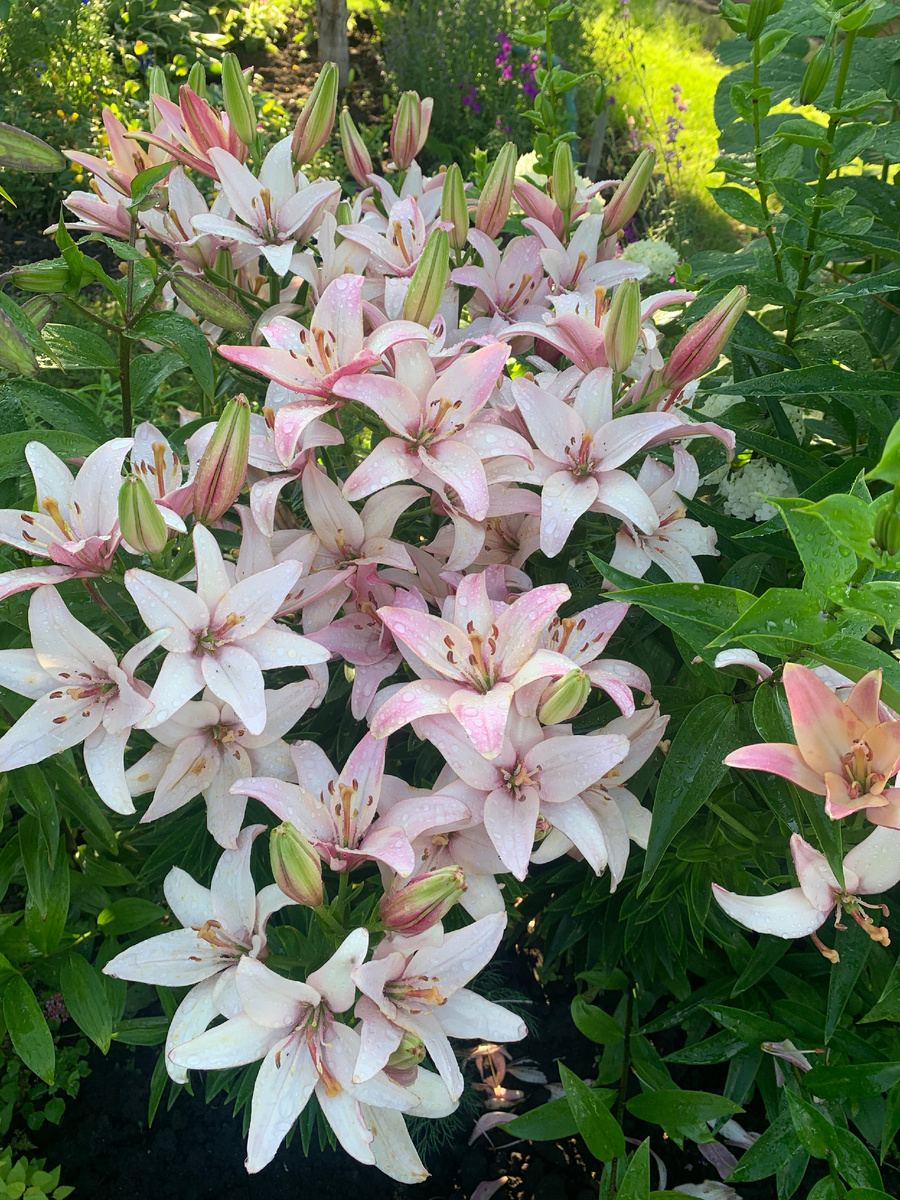 Другие же лилии только начинают формировать бутоны. Удивительно, но даже одинаковые цветы, растущие в разных уголках сада, зацветают одновременно. Вероятно, в тени растения могут развиваться иначе, но это уже другая среда для их роста.