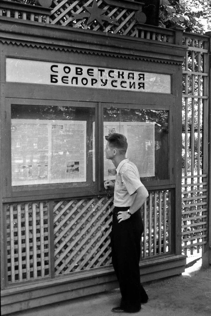 Просто. У газетного стенда в Минске. 1956 год.