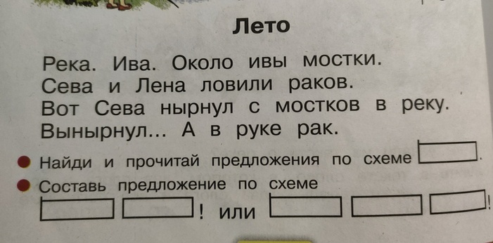 Проблема ещё шире, на самом деле. Вы почитайте учебники для первого класса. Это же полный трындец! Я, взрослый и образованный мужик, сначала пытаюсь понять, что вообще хотят от ребенка в задании, а затем ещё должен это доходчиво объяснить ребенку! Вот вчера, к примеру, делали задание по чтению (первый класс). Казалось бы, чего проще? Ребенок должен найти в тексте предложение, состоящее из одного слова. Он нашел без меня. Но на "Вынырнул..." у него случился ступор. Вроде одно слово в предложении. Но там стоит троеточие. И к чему относить? И что такое троеточие, почему не просто точка? Вот нахрена оно там??? Что бы изменилось, если бы там просто точка стояла??? И как игнорировать данный вопрос у ребенка? Пришлось объяснять смысл троеточия в конце предложения. Слов нет просто. Проблема на ровном, нахрен, месте! А главное - зачем??? Нынешним учителям, которые могут в данных условиях дать нормальные знания ребенку, надо памятники ставить при жизни. Пост автора KalyaginVasiliy. Читать комме
