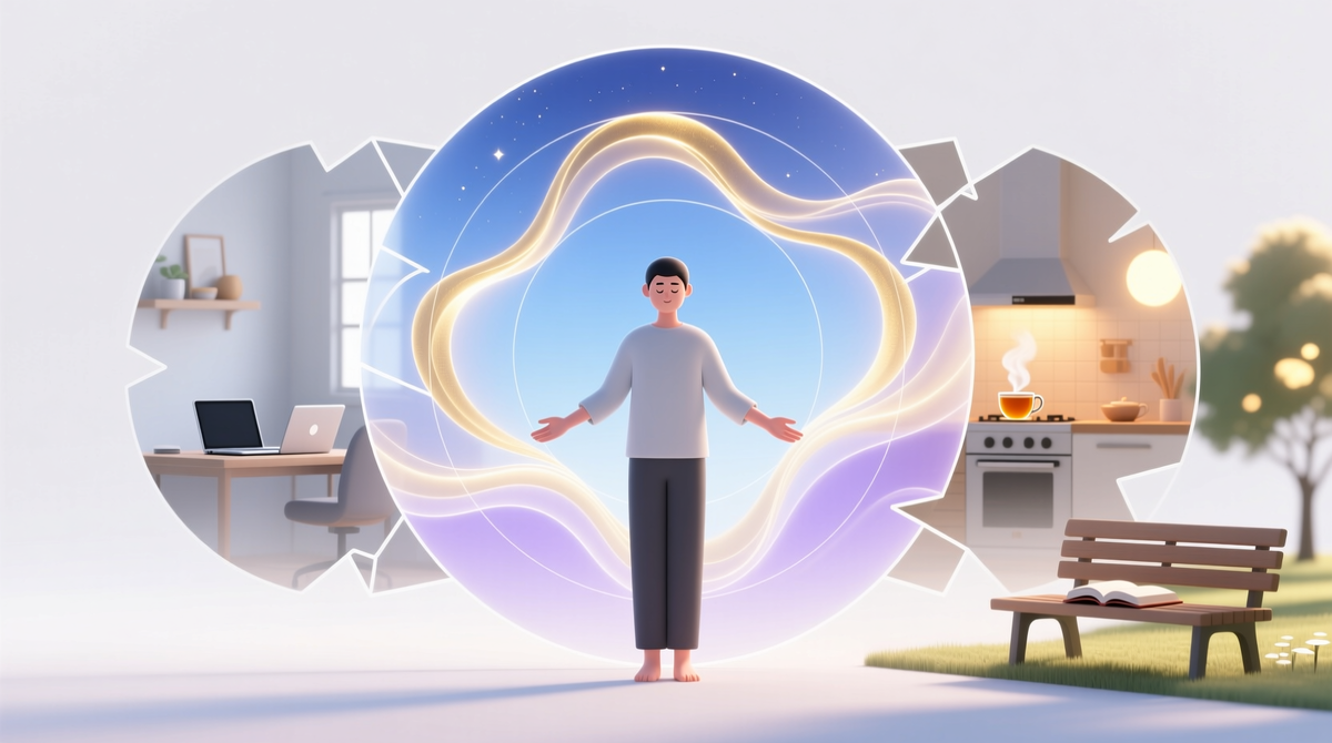 Вспомните момент, когда вы полностью погружались в какое-то дело - возможно, рисовали, занимались спортом или даже мыли посуду - и вдруг ловили себя на том, что время как будто остановилось. В этой точке исчезает суета, прекращается внутренний диалог, и остаётся только чистое присутствие. Это не мистика - это естественное состояние сознания, которое мы постепенно разучились использовать в современном мире. Парадокс современного человека Мы привыкли жить в режиме "или-или": Но наша природа устроена иначе. Мы можем одновременно: Почему это важно именно сейчас В мире, где внимание стало главным ресурсом, способность сохранять многомерное присутствие становится не роскошью, а необходимостью. Это как научиться дышать полной грудью в условиях разреженного воздуха. Когда мы теряем эту связь, энергия истощается уже к полудню, стресс копится исподволь, решения рождаются из суеты, а жизнь проносится мимо, пока мы строим планы на неё. Как вернуться к целостности Представьте, что ваше сознание - э