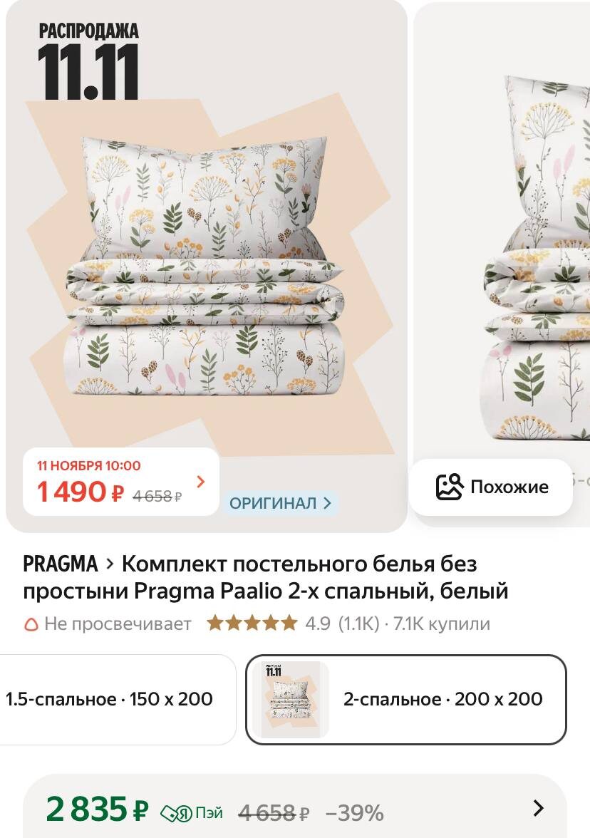 Доброе утро 😃 Сегодня 11.11, а это значит - можно выгодно купить и реально сэкономить 🎉 Комплект постельного белья без простыни Pragma Paalio 2-х спальный, белый Через пару часов цена снизится!!!! Я жду 😮 https://market.yandex.ru/cc/7yoDdW Цена на 🛍: 1499 ₽ | 4658 ₽ рейтинг: 4.9⭐️ выгодная цена 💲 ⭐️BER103-AF — минус 100₽ на один любой заказ от 5000₽ ✅ Подписаться 🔣 Бот с промокодами