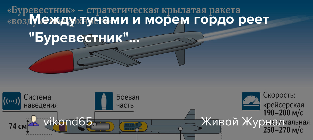 Из знаменитого доклада начальника Генерального штаба генерала армии Герасимова подавляющее число масс-медиа ухватили только то, что наша птичка преодолела 14 тысяч километров за 15 часов. И всё! Эти сведения не отражают подлинной революционной сущности достижения российских учёных, конструкторов и промышленников, потому что немалому числу современных образцов крылатых ракет по силам двигаться со скоростью 900 километров в час и преодолеть если не 14 тысяч километров, то хотя бы 10 тысяч. Между тем, как информация о том, что она неоднократно совершала манёвры по команде наших пунктов управления, а также самостоятельно по заложенной в аппарат программе с изменением: направления, высоты и скорости полёта, огибая зоны ПВО; осталась вне поля внимания международной общественности. А зря! Именно это совместно с возможностью продолжать полёт несколько дней, а может и недель даёт «Буревестнику» способность преодолевать огромные расстояния в пределах земной атмосферы и обходить все существующие зоны ПВО и ПРО. Бортовое радиоэлектронное оборудование даёт ему возможность менять полётное задание, обнаруживать РЛС противника и менять траекторию движения. Поскольку кислород из атмосферы для работы двигателя «Буревестнику» совсем не нужен, то это позволяет ему подниматься в верхние слои атмосферы, недоступные для современной авиации из-за недостатка кислорода . Тем самым расширяются его способности выполнения задач: разведки, РЭБ, связи, навигации и т.д.. К тому же поднимаясь на такие высоты, он становится неуязвим для комплексов ПВО и ПРО стран Запада. Т.к. западные средства ПВО не обладают возможностью поражать цели на высотах более 25 километров, а для средств ПРО он летит слишком низко и она его просто не видит, а главное не имеет средств поражения подобных целей. Ну а свойство неделями без перерыва на отдых экипажа, заправку аппарата топливом и техобслуживание, летать над поверхностью планеты, патрулируя колоссальные области в самых различных регионах Земли, по достоинству оценят военачальники армии и флота России. Возможность поднять десятки наших передовых крылатых ракет и направить их в зоны, где нет ПВО для барражирования в ожидании приказа на боевое применение в угрожаемый период – это наглядная и зримая демонстрация способности России к отражению ракетно-ядерного нападения. «Буревестник» будет незаменим для уничтожения объектов, уцелевших после первого ответного ядерного удара России. Также он будет незаменим для уничтожения бункеров и убежищ финансово-промышленной олигархии, надеющейся спастись от последствий Третьей Мировой войны в южном полушарии: на юге Австралии, в Новой Зеландии или Патагонии. Применение изделия без атомного боезаряда исключено: сам «Буревестник» настолько уникален и дорог, чтобы таскать 500 килограмм взрывчатки для уничтожения заурядной цели, как какой-нибудь «Томогавк». Да и не помешает он в качестве самоликвидатора, если супостаты задумают сбить патрульный аппарат с целью захватить его, чтобы узнать уникальнейшие секреты его изготовления. Особенно будет полезен «Буревестник» при охране государственной границы на Севере и Дальнем Востоке. Буквально несколько изделий будет достаточно для этой функции, легко заменив целый полк пилотируемой авиации. Роботу не нужны зарплата и соцпакет. Лё