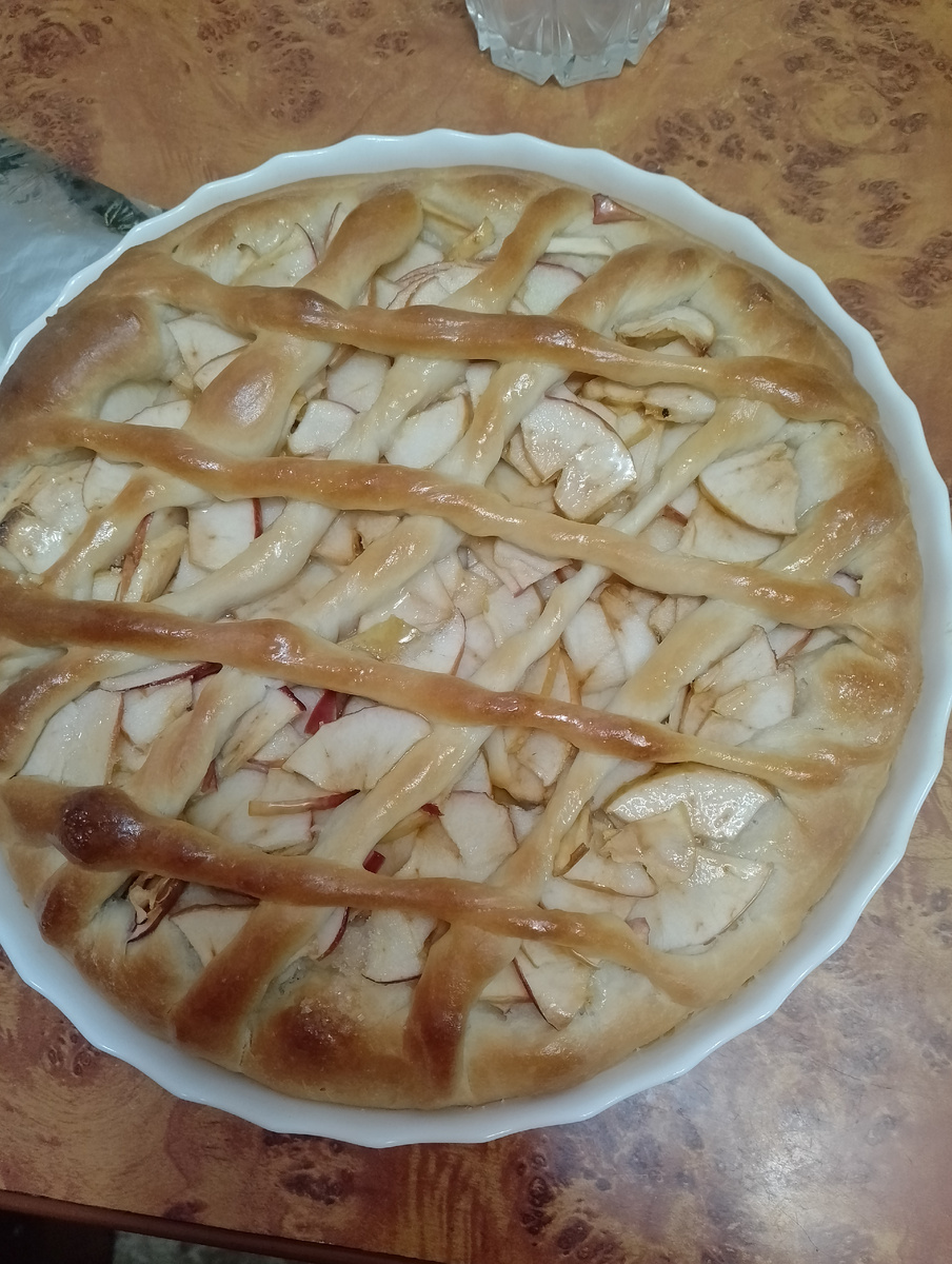 Купила яблоки ,а они твердые и тут возник рецепт. Пачка дрожжей 10 го Сахар 4 столовые ложки Пол стакана сливки или жирная сметана Пол стакана теплой воды Соль по вкусу Мука сколько возьмёт у меня не тугое тесто Растительное масло две столовые ложки Замесить как обычно, поднимется сделать пирог какой формы вам нравится. Яблоки порезать посахарить и в духовку на 180 гр до пропекания теста У меня вот такой. смазать сливочным маслом. Очень вкусно получилось.