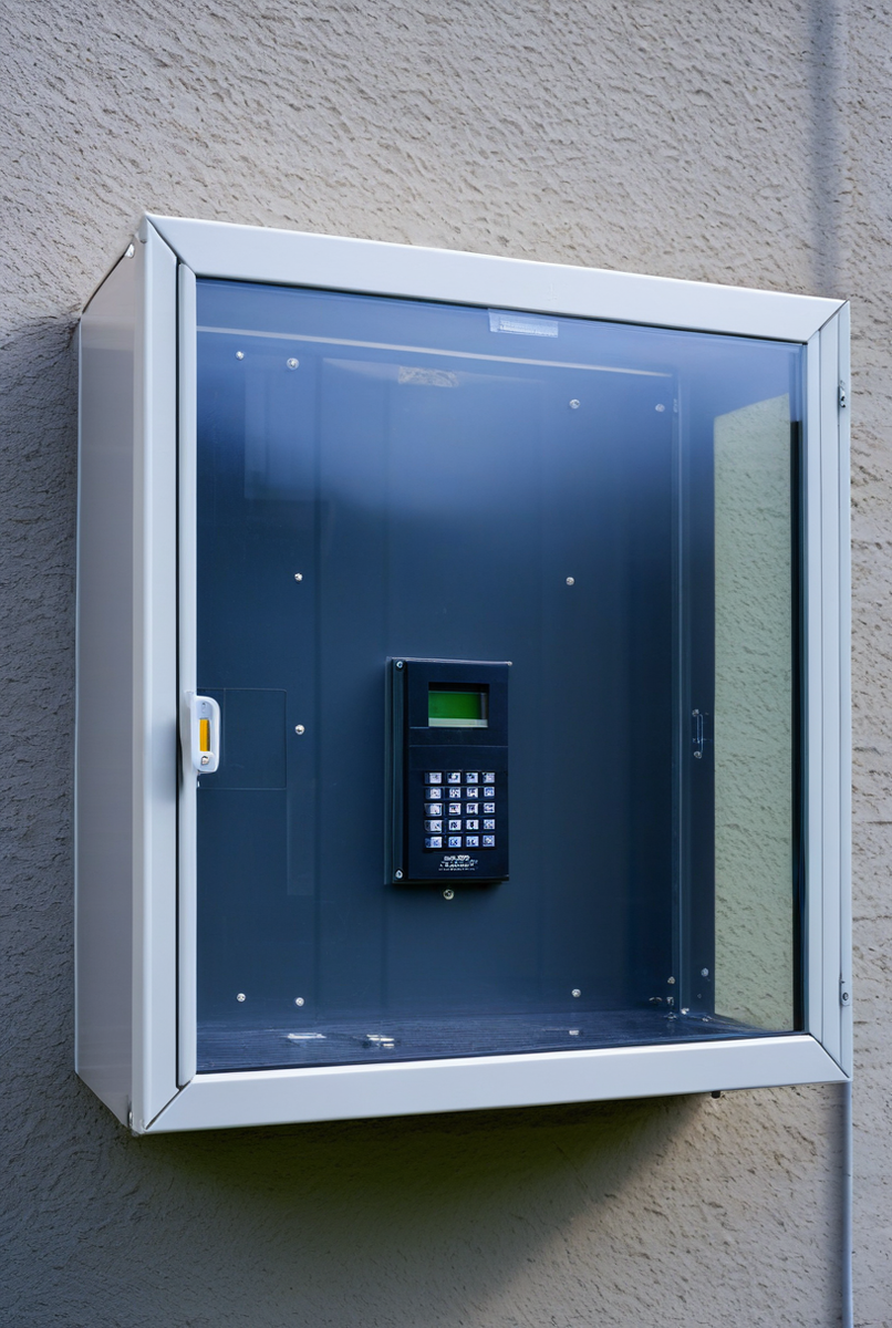 - Характеристики материалов: пластиковый или металлический распределительный щит, бокс с замком и прозрачная крышка