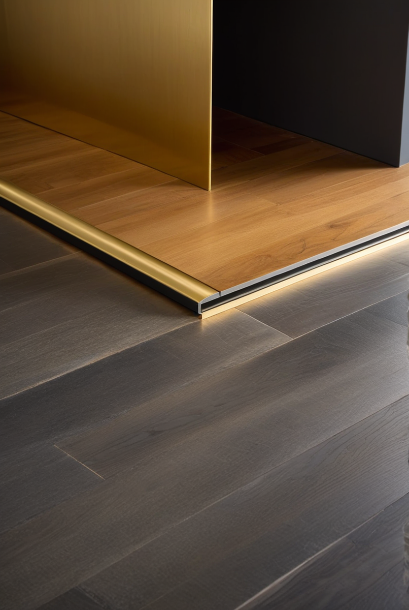 - Выбор порога: Г-образный стыковочный профиль из анодированного алюминия (артикул 9241) – размер, цвет (под золото, бронза, серебро) и износостойкость (рифленая или гладкая поверхность).