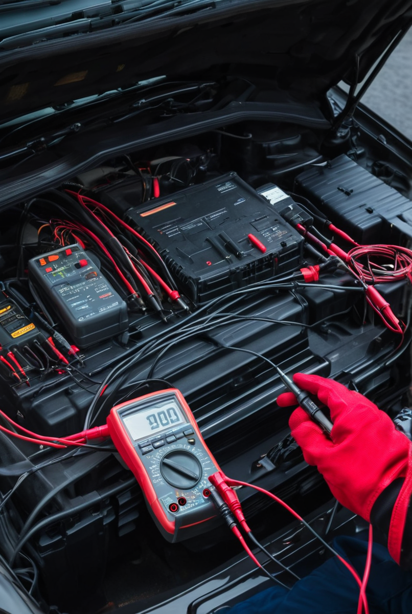 Освоить, как пользоваться автотестером, – значит получить ключ к базовой диагностике. Начнем с сердца электросистемы. Измерение напряжения аккумулятора: выключите зажигание, установите мультиметр автомобильный в режим DCV (20V). Красный щуп – на «+», черный – на «–». Показания 12.6-12.8 В говорят о полной зарядке. Значение ниже 12.2 В – сигнал к необходимости подзарядки.