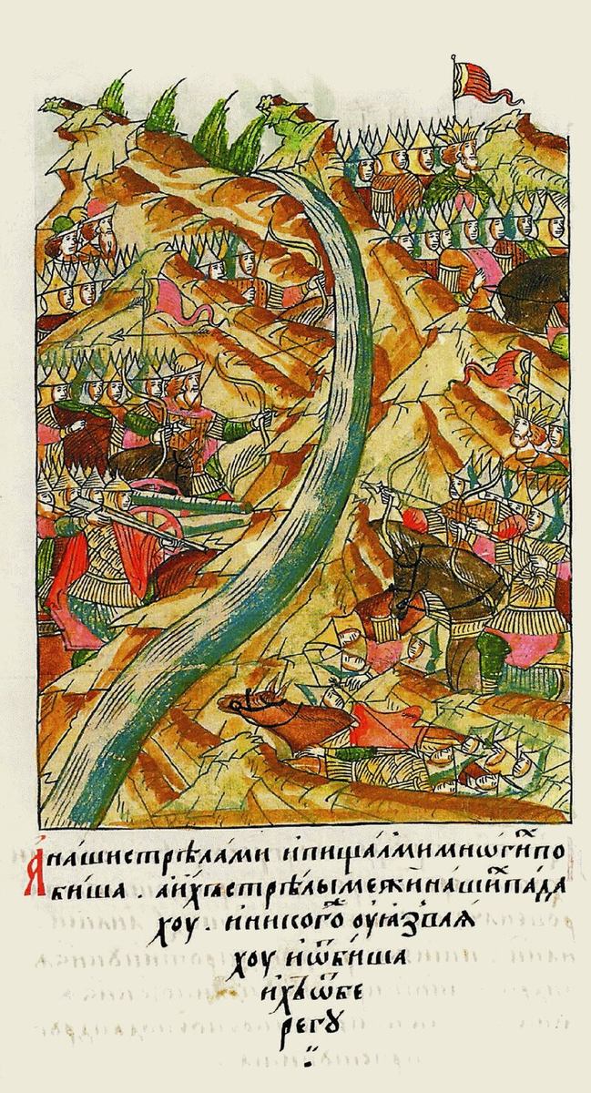 8 октября 1480 года началось само «стояние». Хан Ахмат предпринял попытку форсировать реку. Главный бой разгорелся на пятикилометровом участке от устья Угры до впадения в нее реки Росвянки. Ордынская конница вошла в воду, пытаясь под прикрытием лучников достичь противоположного берега. Но здесь их ждало серьезное препятствие.