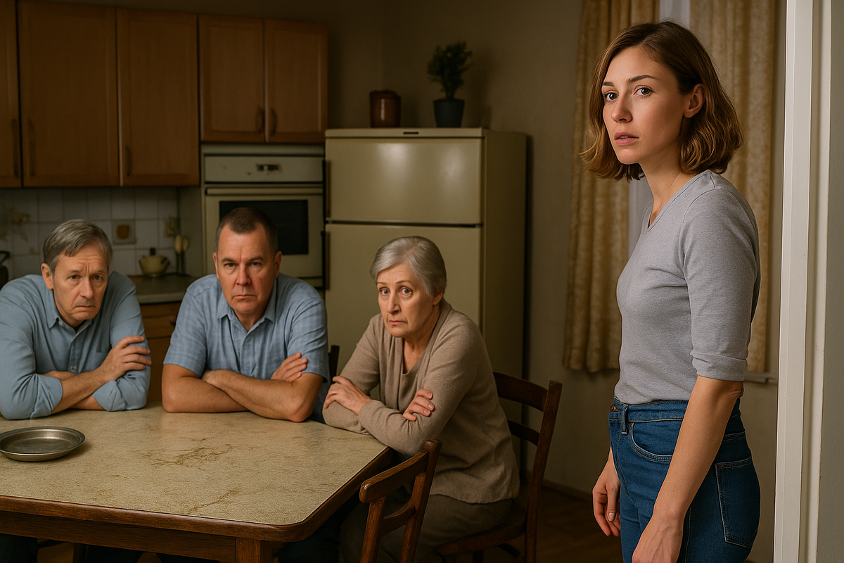 Кухня была старая, но упрямая — как бабушкина прялка, пережившая и моду, и ремонты, и чужие разговоры. Лампочка под эмалированным абажуром давала мягкий, тёплый свет, и он дробился на лицах тех, кто собрался за столом: Глеб, я, свекровь Вера Павловна и свёкр Николай Ильич. На подоконнике дремал фикус с растопыренными листьями, и где-то, глухо и мирно, тикали часы.
