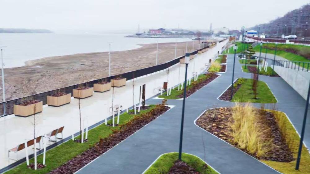 В Перми завершили строительство нового участка набережной Камы — от площади Трёх столетий до Мотовилихинских заводов. Теперь прогулочная зона длиной полтора километра соединяет Ленинский и Мотовилихинский районы города. Здесь построили подпорные стены, проложили инженерные сети и обустроили двухуровневое пространство с велодорожками, пешеходными тропами и променадами. На набережной появились современные скамейки, освещение, детская площадка, павильоны для проката и отдыха, а также велопарковка. Подпорные стены украсили муралы с подсветкой, изображающие достопримечательности прикамских городов и обитателей реки Камы.