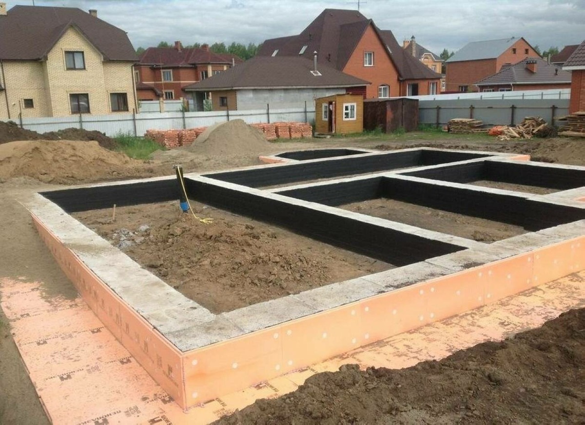 - Земляные работы: Выбираем весь плодородный слой до плотного основания. Траншея шире будущей ленты — для удобства монтажа утеплителя.