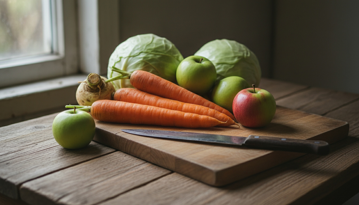 - Гигиена: мойте, но не замачивайте овощи; нож и доска должны быть чистыми. Не используйте алюминий или оцинкованную посуду — кислота и металл не друзья.