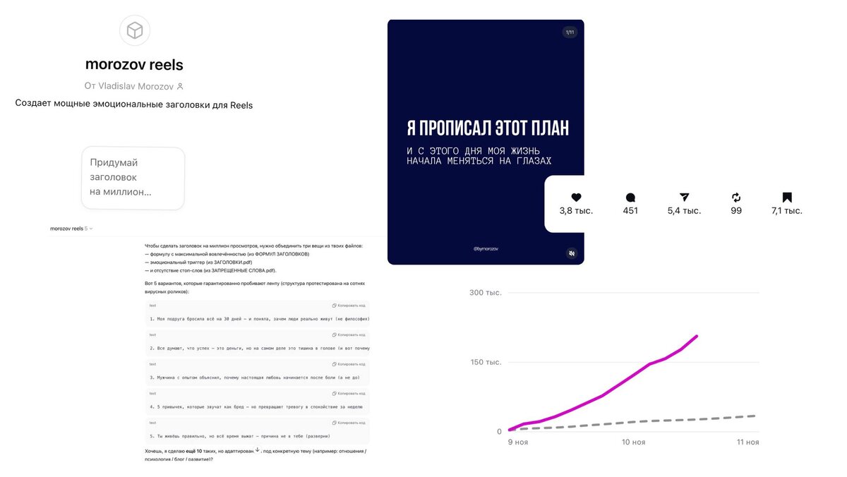 ΠΎΠ΄Π΅.. ΠΡΠΎΡΡΠΎ ΠΊΡΠΎ-ΡΠΎ Π΄Π΅Π»Π°Π» Π½Π΅ ΠΏΡΠ°Π²ΠΈΠ»ΡΠ½ΠΎ. Π ΠΌΡ Ρ ΠΊΠΎΠΌΠ°Π½Π΄ΠΎΠΉ ΡΠ΅ΡΠΈΠ»ΠΈ Π²ΡΡ ΡΡΠΎ ΡΠΏΡΠΎΡΡΠΈΡΡ ΠΈ ΠΎΡΡΠ°Π²ΠΈΡΡ ΡΠ΅Π»ΠΎΠ²Π΅ΠΊΡ ΡΠΎΠ»ΡΠΊΠΎ ΡΠ°ΠΌΠΎΠ΅ Π²Π°ΠΆΠ½ΠΎΠ΅ - Π΅Π³ΠΎ ΡΠΌΡΡΠ» ΠΈ ΠΎΠΏΡΡ Π² ΡΠ΅ΠΊΡΡΠ΅! Π Π²ΡΠ΅ ΠΎΡΡΠ°Π»ΡΠ½ΠΎΠ΅ ΠΏΠ΅ΡΠ΅Π΄Π°ΡΡ ΠΠ. ΠΡ ΡΠΏΠ°ΠΊΠΎΠ²Π°Π»ΠΈ Π²Π΅ΡΡ Π½Π°Ρ ΠΊΠΎΠ»ΠΎΡΡΠ°Π»ΡΠ½ΡΠΉ ΠΎΠΏΡΡ Π² ΡΠΎΠ·Π΄Π°Π½ΠΈΠ΅ ΠΊΠΎΠ½ΡΠ΅Π½ΡΠ° Π·Π° ΠΊΡΠ°ΠΉΠ½ΠΈΠΉ Π³ΠΎΠ΄ Π² ΠΠ, ΠΊΠΎΡΠΎΡΡΠΉ ΡΠ΅ΠΏΠ΅ΡΡ ΡΠΎΠ·Π΄Π°Π΅Ρ ΠΊΠΎΠ½ΡΠ΅Π½Ρ: ΠΏΠΎ ΠΏΡΠ°Π²ΠΈΠ»ΡΠ½ΠΎΠΉ ΡΡΡΡΠΊΡΡΡΠ΅, Ρ ΡΡΠΈΠ³Π³Π΅ΡΠ½ΡΠΌ Π·Π°Π³ΠΎΠ»ΠΎΠ²ΠΊΠΎΠΌ, ΡΠ΄Π΅ΡΠΆΠ°Π½ΠΈΠ΅ΠΌ Π²Π½ΠΈΠΌΠ°Π½ΠΈΡ ΠΈ Π³ΠΎΡΠΎΠ²ΡΠΌ ΠΎΡΠΎΡΠΌΠ»Π΅Π½ΠΈΠ΅ΠΌ. ΠΠΎΠΆΠ½ΠΎ ΠΏΡΠΎΡΡΠΎ Π²ΡΡΠ°Π²ΠΈΡΡ ΡΠ΅ΠΌΡ ΠΈ ΡΠ΅ΡΠ΅Π· ΠΌΠΈΠ½ΡΡΡ Π±ΡΠ΄Π΅Ρ Π³ΠΎΡΠΎΠ² ΠΏΠΎΡΡ, ΠΊΠΎΡΠΎΡΡΠΉ ΠΌΠΎΠΆΠ½ΠΎ ΠΏΡΠ±Π»ΠΈΠΊΠΎΠ²Π°ΡΡ ΠΈΠ»ΠΈ ΡΡΠ΅Π½Π°ΡΠΈΠΉ Π΄Π»Ρ Reels, ΠΊΠΎΡΠΎΡΡΠΉ Π½Π°Π±ΠΈΡΠ°Π΅Ρ ΠΎΡ