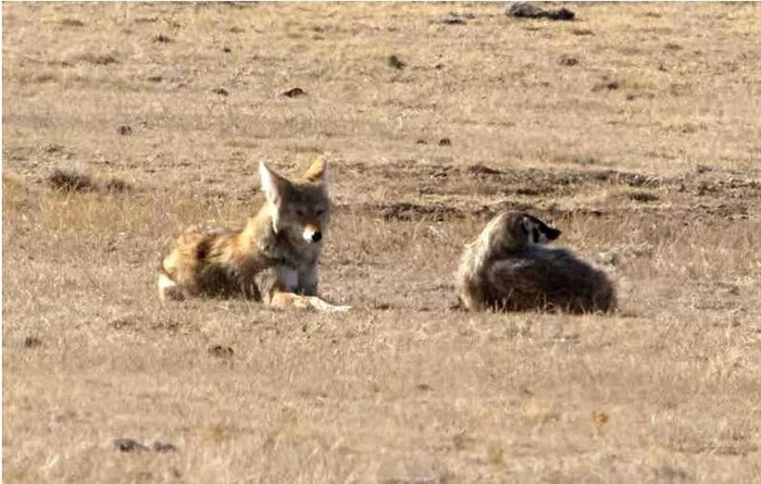 Идеальный дуэт суперзлодеев — а может быть, и супергероев из мультфильмов. Вероятно, вы слышали — а если нет, будет немножко полезной информации. Барсуки и койоты очень эффективно охотятся вместе. Раньше ученые только предполагали, что барсуки и койоты «работают вместе», но не так давно вышло большое исследование, и это оказалось правдой. Дело в том, что барсуки очень хорошо раскапывают норы других животных, но вот незадача — когда из норы выбегает заяц или суслик, медленный землекоп-барсук просто не успевает его поймать. А Молния Маккуин Койот говорит: «ПОДЕРЖИ МОЁ ПИВО, бро» — и несется как угорелый за добычей, ведь он может поймать кого угодно. А вот копать наш любитель бега вообще не умеет. И вы понимаете, что будет, если эту парочку объединить? Каким-то образом агрессивные койоты вообще перестали атаковать барсуков, как будто бы они заключили мохнатый договор: «Гуляем и держимся вместе. Твоё дело копать, а моё — догонять. Еду делим примерно 50 на 50. Ну или почти 50 на 50 — оба же