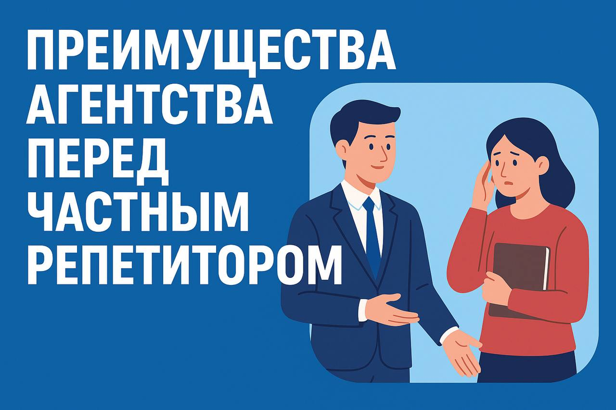 Преимущества агентства перед частным репетитором: почему это выгоднее и безопаснее? Здравствуйте! На связи основатель репетиторского агентства. Сегодня хочу поговорить о важной теме — как выбрать не просто репетитора, а действительно безопасный и результативный формат обучения. Когда родителям нужно найти специалиста, который поможет ребёнку подтянуть успеваемость, важно учитывать не только квалификацию педагога, но и условия, в которых будет проходить обучение. Именно поэтому всё больше семей выбирают не частных преподавателей, а услуги агентства. Рассказываю, почему это действительно разумный выбор. Мы уверены в профессионализме своих преподавателей — поэтому предлагаем гарантию возврата средств, если обучение не оправдало ожиданий. Так мы доказываем, что действительно ценим доверие клиентов и ориентируемся на результат. Если репетитор заболел или по какой-то причине не может провести занятие, вам не придётся отменять урок и тратить время на поиск нового специалиста. Мы подберём зам