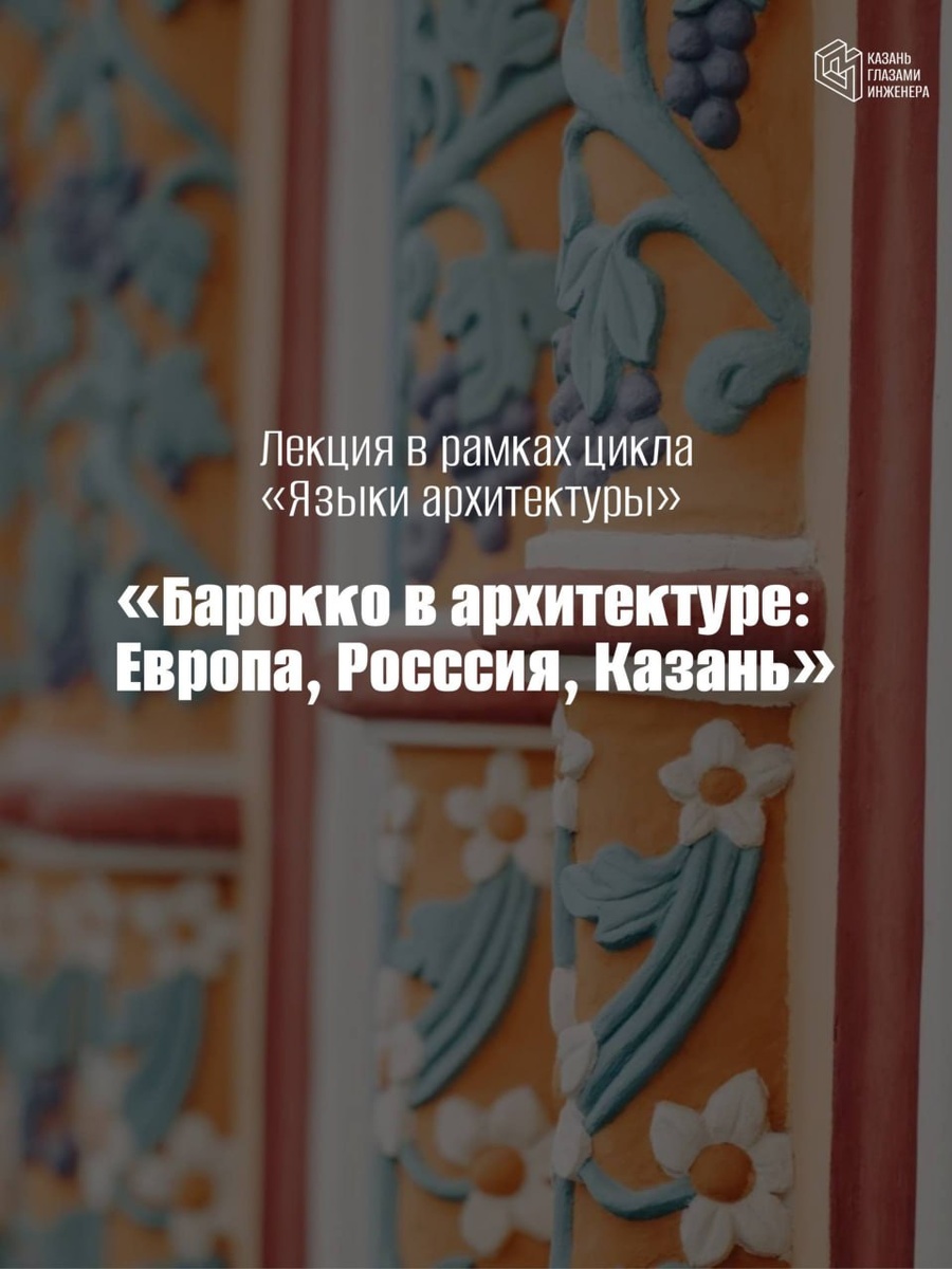 Лекция: «Барокко в архитектуре: Европа, Россия, Казань» Стиль барокко возник в Италии XVII века — в эпоху глубинных общественных перемен и контрреформации. Богатый декор, динамичные фасады, сложные силуэты и эффектные пространственные решения отражали ту самую «напряженность времени» и жажду выразительности. На лекции вы обсудите: ✨ Как барокко отличается от других стилей и по каким признакам его легко узнать; ✨ Почему этот стиль стал таким популярным и причины его возникновения; ✨ Чем отличается российское барокко от европейского; ✨ Где в Казани можно встретить здания и детали в этом стиле: от известных храмов до неожиданных элементов в городской среде. 🕕 12 ноября в 19:00 📍 ЦСК Смена 🎫 Билеты по ссылке
