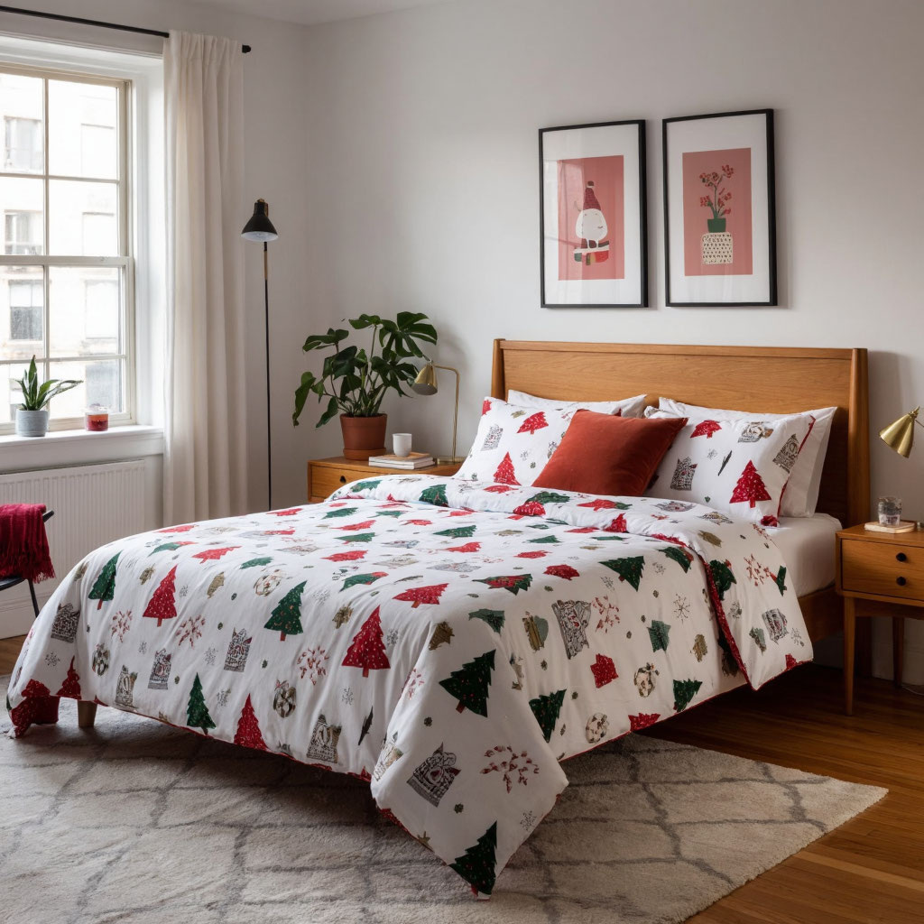 Комплект из поплина с новогодним принтом. Подходит для полуторной кровати. Цена: 2 000 ₽