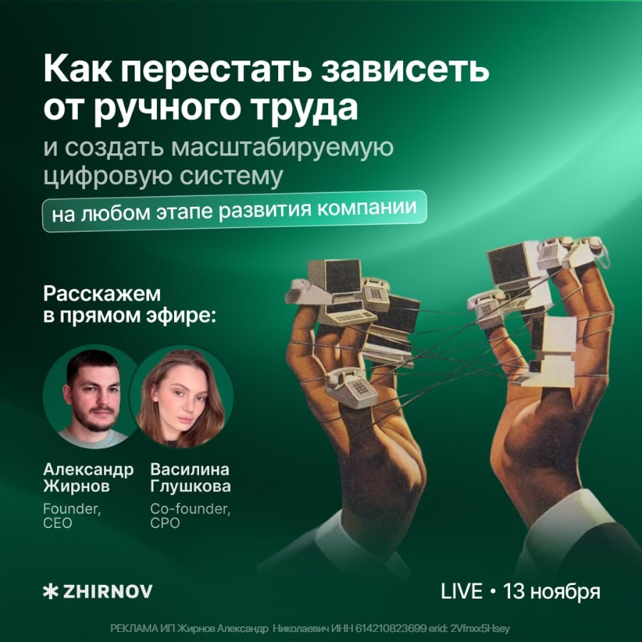Если у вас всё держится на ручном управлении - это сигнал🔺 Менеджеры становятся «прослойкой» между клиентом и бизнесом, процессы тормозятся, расходы растут⚪️ Знакомые ребята проводят прямой эфир 13 ноября и на примере финансовой группы покажут, как они трансформировали ручной труд менеджеров в масштабируемую систему. На встрече обсудим👇 🟡 Почему цифровую платформу можно (и нужно) строить на любом этапе развития бизнеса 🟡 Как выстроить архитектуру, которая снизит нагрузку на команду, сэкономит ресурсы и ускорит обслуживание клиентов 🟡 5 шагов к оцифровровке ручных процессов, как мы с нуля сделали личный кабинет для заемщиков и инвесторов 🔥Эфир пройдет 13 ноября, 19:00 (МСК) Следите за обновлениями в канале — ссылка появится в день эфира. 😊 После эфира участники получат чек-лист «Как создать MVP и проверить, нужен ли продукт рынку» Чек-лист поможет: 🔘 протестировать 10–20 гипотез без кода 🔘 сэкономить месяцы и сотни тысяч на тупиковых идеях 🔘 быстрее выйти к product-marke