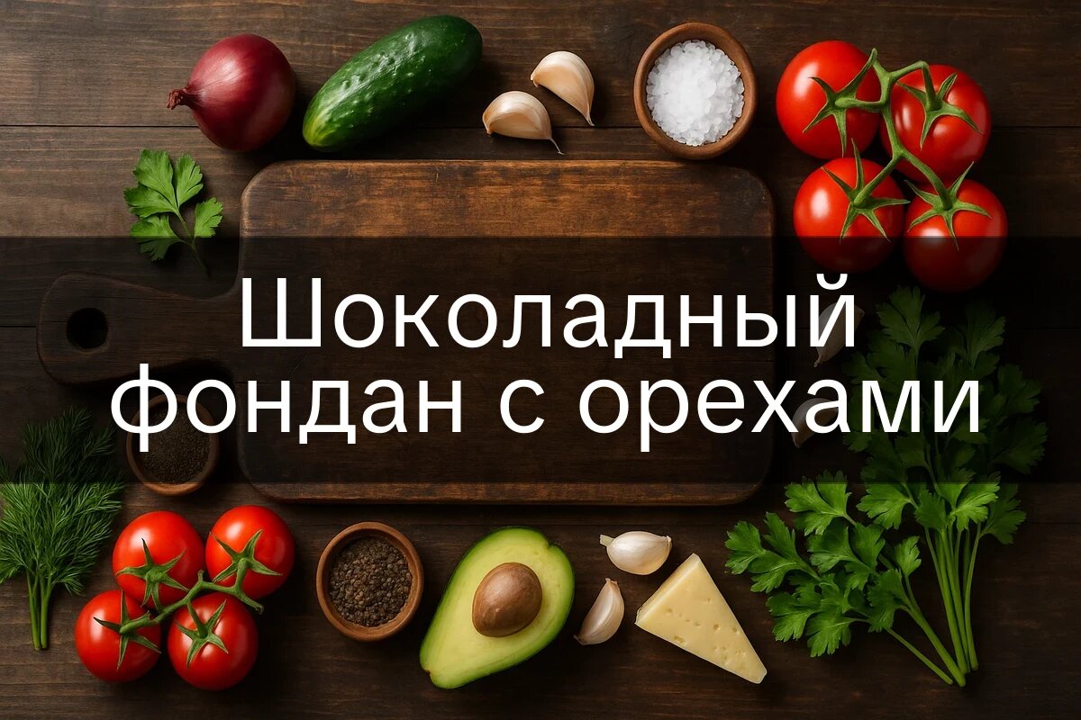 Этот шоколадный фондан с орехами отличается мягкой текстурой и насыщенным вкусом, который идеально подходит для романтического вечера или особого случая. Его приготовление не требует много времени, но результат впечатляет своей изысканностью и гармонией вкусов. Порций: 2Время: 30 минСложность: средне ккал Белки Жиры Углеводы На блюдо 900 ккал 12 г белков 50 г жиров 100 г углеводов На 100 г 150 ккал 2 г белков 8.3 г жиров 16.7 г углеводов На порцию 450 ккал 6 г белков 25 г жиров 50 г углеводов