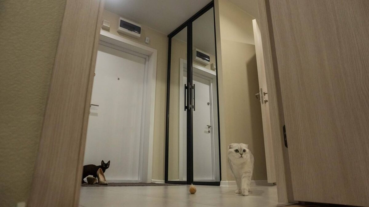 Зеркальная распашная дверь в гардеробную — кейс Алины