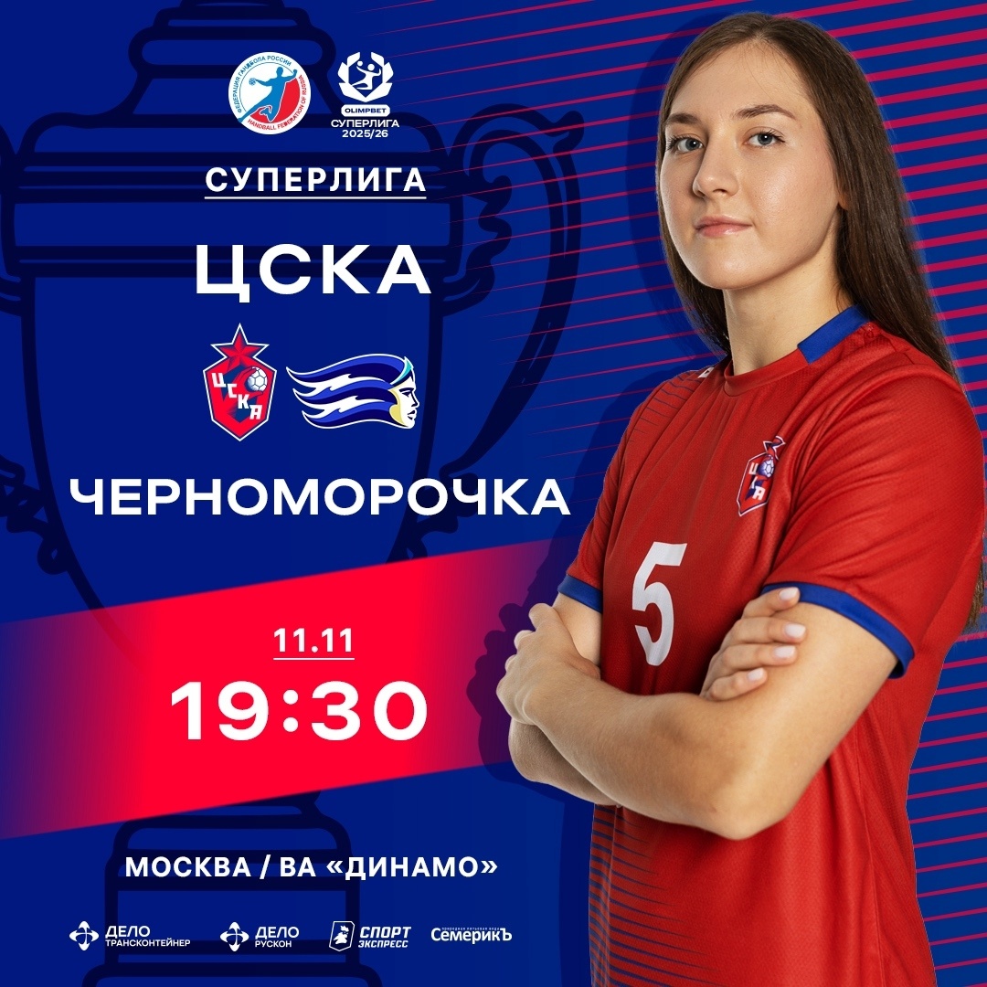 Чемпион России ЦСКА сегодня сыграет с "Черноморочкой" в Суперлиге. Эту игру женской Суперлиги в прямом эфире покажет телеканал "Матч! Страна". 11 ноября ЦСКА - Черноморочка - 19.30 (мск) ЦСКА: Верещак, Маркина; Собкало, Баева, В.Сёмина, Мурзалиева, Козаченко, Шинкарук, Чигиринова, Сабирова, Крупенникова, Санталова, Гаряева, Илларионова, Явон, С.Васильева. Черноморочка: Лагина, Кирикиас, Дяченко; Бондаренко, Вакулич, Шкитина, Кремнёва, Сивовалова, Вигуржинская, Ал.Сергиенко, Федосова, Долматова, Горшенина, Шанова, Чешева, Зотина. Турнирное положение. 1.Ростов-Дон - 20 очков (10 матчей). 2.ЦСКА - 18 (9). 3.Лада - 13 (10). 4.Астраханочка - 12 (10). 5.Черноморочка - 11 (9). 6.Звезда - 11 (10). 7.Динамо-Синара - 10 (10). 8.Кубань - 9 (10). 9.АГУ-Адыиф - 5 (9). 10.Луч - 5 (10). 11.Уфа-Алиса - 2 (10). 12.Университет - 0 (9). Прямые трансляции матчей доступны на портале "Гандбол ТВ" Фото: vk.com/whccska