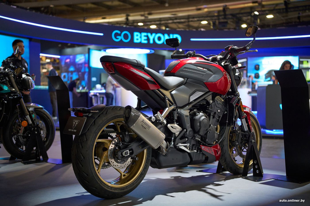 Британская компания Triumph представила абсолютно новую модель — Trident 800. Это своего рода эволюция стрита 660. Модель получила 3-цилиндровый двигатель объемом 798 куб. см, выдающий 115 л. с. и 84 Н·м. Байк оснащен тремя режимами езды (Road, Sport и Rain), круиз-контролем и 6-осевым IMU, управляющим угловыми системами ABS и трекшн-контролем.
