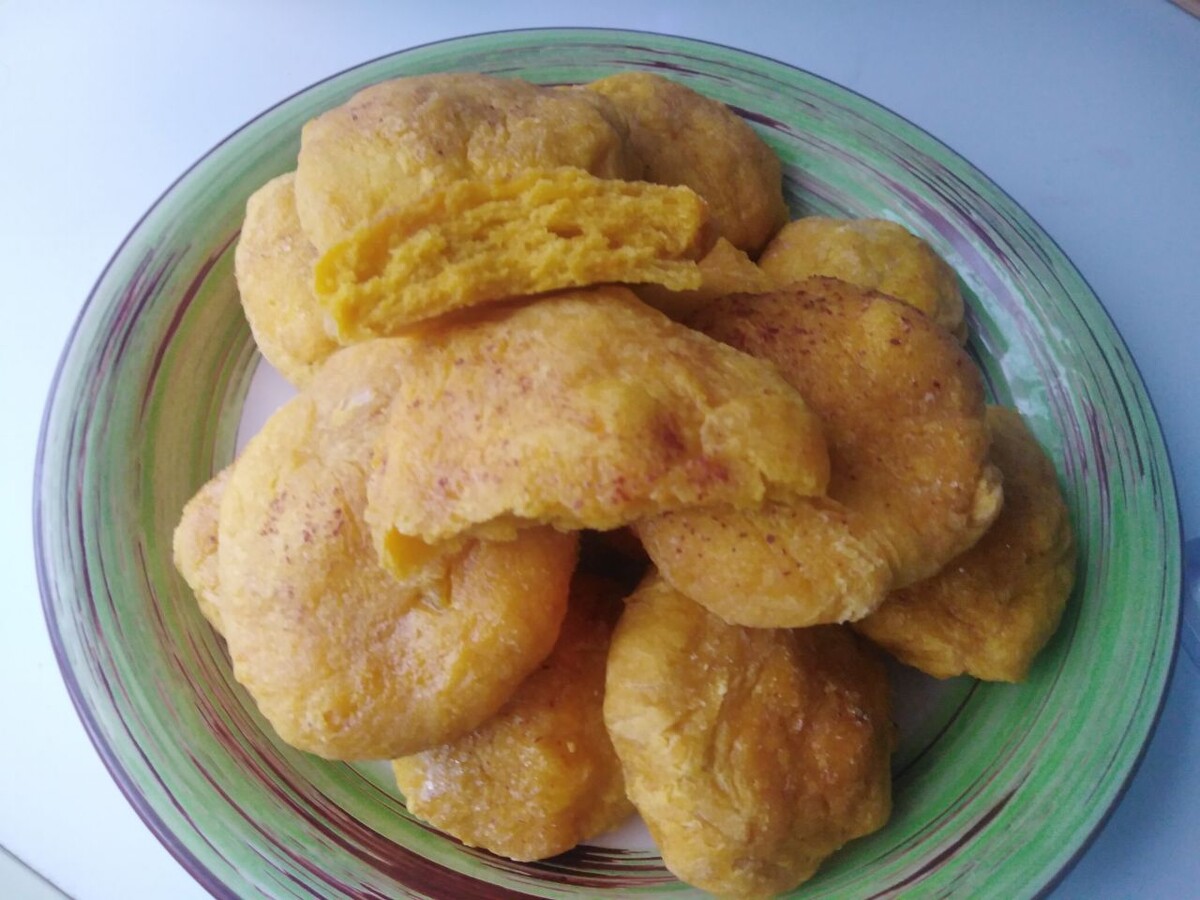 Всем привет! Я бы назвать могла их даже не печеньем, а булочками, так как они очень мягкие и воздушные. У меня сейчас не работает духовка, поэтому я адаптировала приготовление этого десерта под микроволновку. Ну конечно же их можно (изначально это и предполагалось) готовить в духовке. Первым делом мы подготавливаем тыкву, чистим от кожуры и семечек, нарезаем и отправляем её в кастрюлю, добавив немного воды (с водой тыква готовится на много быстрее, чем без неё). Готовится на огне примерно 10-15 минут до мягкого состояния. Когда тыква стала мягкой, мы снимаем её с огня, сливаем воду и погружным блендером перебиваем её в однородное пюре и сразу же в горячее пюре добавляем сливочное масло, чтобы оно растаяло (если замороженное) и перемешалось до однородного состояния. Оставляем тыкву остывать. Когда масса остынет начинаем замешивать тесто. Добавляем яйца, соль, сахар, ванильный сахар, соду (разрыхлитель) в тыквенное пюре. Сахар добавляем не весь, а только 100г., так как часть пойде