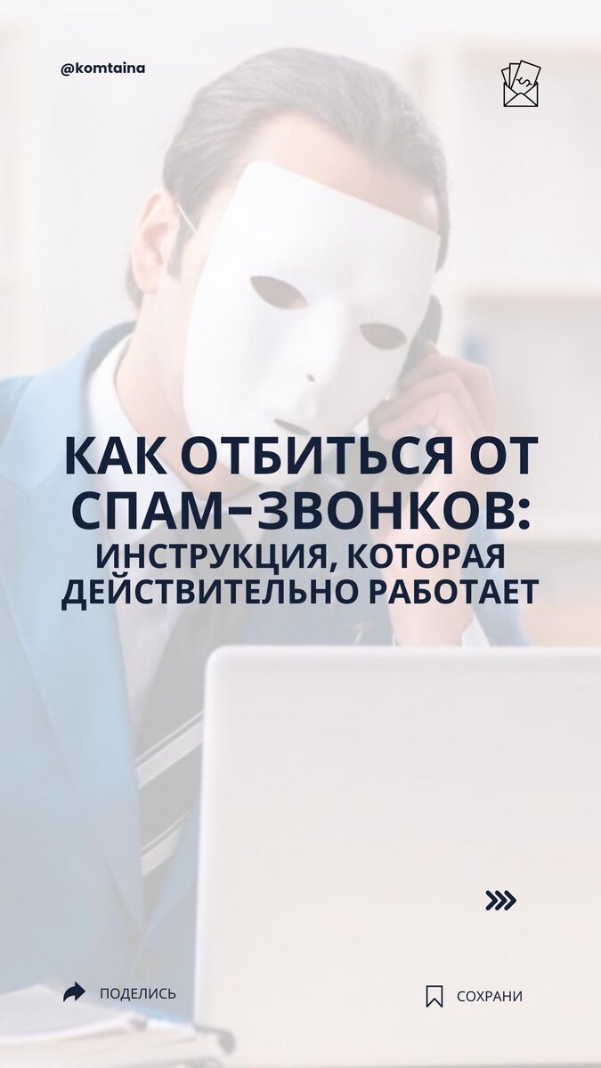 ☎️ Как отбиться от спам-звонков: инструкция, которая действительно работает С 1 сентября в России официально вступил в силу запрет на спам-звонки без согласия абонента. По закону ваш телефон теперь должен молчать, если вы не давали разрешения на рекламные обзвоны. Исключение — звонки от банков, с которыми у вас есть договор, и госорганов, действующих в рамках своих полномочий. Но, как это часто бывает, закон приняли, а привычки не исчезли. Если телефон всё ещё не умолкает — придётся действовать самостоятельно. @komtaina