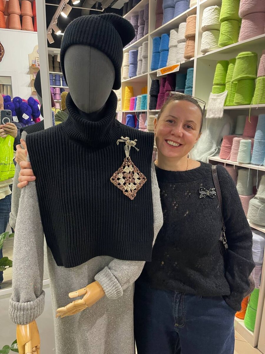 Вчера была в Olinda. Взрыв мозга. Все потрогала, все пощупала. Сняла для вас видео интересных смесовок с фольгой и люрексом. Очень понравилась интарсия с букле и гладкой пряжей. Манишка и шапочка на маникене тоже красиво смотрятся.