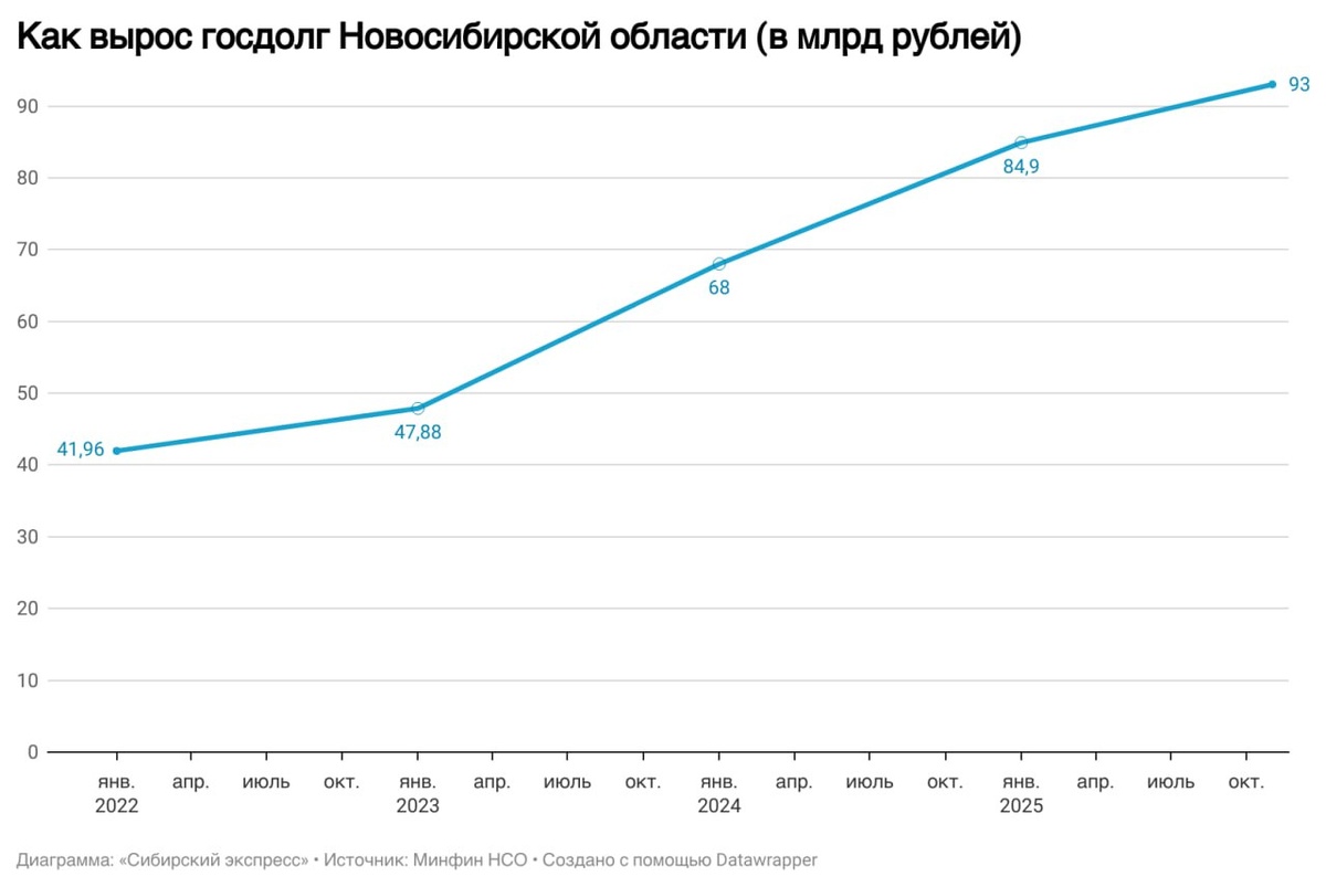 Бюджет Новосибирской области пошёл по «негативному сценарию» Бюджет Новосибирской области недополучил 4 млрд рублей по налогу на прибыль в октябре 2025 года, заявил министр финансов региона Виталий Голубенко. С начала года собственные доходы бюджета составили 227 млрд — это 75% от плана. Общие доходы достигли 251 млрд при расходах 295 млрд рублей. Дефицит бюджета составляет 44 млрд, что уже выше плана на 0,5 млрд. В связи с этим в закон о бюджете готовятся изменения, зафиксирующие уменьшение плановых доходов. «По итогам октября, когда мы получали квартальный перерасчет по налогу на прибыль, реализовался негативный сценарий. То есть по третьему кварталу налогоплательщики показали уменьшение налогооблагаемой прибыли»,— отметил Голубенко. Теперь новосибирское правительство вынуждено разместить новые облигационные займы и привлечь банковские кредиты. 📌 До ноября в структуре госдолга региона не было коммерческих кредитов, но в конце октября чиновники взяли 500 млн рублей у Совкомбанк