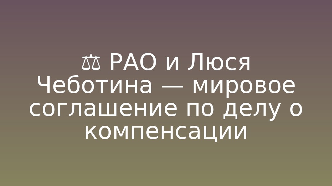 Российское авторское общество и Люся Чеботина направили в арбитражный суд ходатайства об утверждении мирового соглашения по делу о взыскании 160 000 руб. компенсации за незаконное исполнение произведений других авторов. Основанием иска РАО указывало «незаконное использование музыкальных произведений» на концерте «Первая леди» на площадке Live Арена в декабре 2024 года. По данным РАО, на концерте были без разрешения исполнены 8 композиций, в том числе «Разве ты любил» (авторы — Игорь Николаев и Игорь Крутой). Организатором концерта являлась компания, принадлежащая Чеботиной.