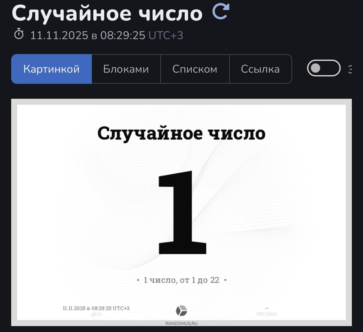 Та-даам! Итоги розыгрыша 2 бесплатных сеансов на очный прием на кушетке и онлайн! Пост розыгрыша https://dzen.ru/media/osteopatekat/-vnimanie-6908a05090bd4b48e736b05c Победители: Остео-сеанс - Елена Онлайн - Светлана Скриншоты комментариев победителей прилагаются! 🎉 Как проводился конкурс? Участники были поделены на два списка : - остео-комментариев набралось 22 - онлайн - 5 Числа были отправлены в рандомайзер , который совершенно беспристрастно выбрал номер победителя (фото прилагаются) Отдельное спасибо одному из участников , который захотел сразу на оба сеанса и был включён сразу в два списка 🤣👍 В комментариях к посту розыгрыша я ответил победительницам, приглашаю их на сеанс в удобное время (или напишите мне в WhatsApp 89678565860) Всем спасибо за участие, участвуйте в конкурсах, которые буду проводить как можно чаще!)