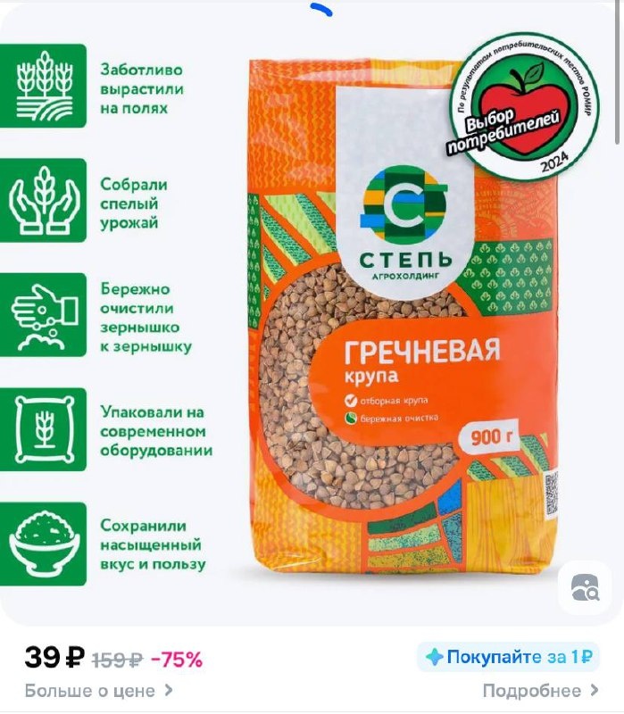 Гречневая крупа Агрохолдинг "СТЕПЬ" 900гр.