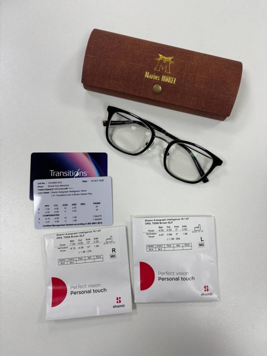 Мужской заказ с прогрессивными линзами 👓 📄У нашего пациента миопия и астигматизм высокой степени, и для максимального комфорта ему нужны очки с прогрессивными линзами для всех расстояний. ✍️Для этого заказа мы заказали прогрессивные линзы последнего поколения Shamir Autograph Intelligence в коэффициенте утончения 1.67. 🕶Дополнительно линзы оснащены функцией фотохром в коричневом цвете и гидрофобным, антистатическим покрытием Glacier Plus, устойчивым к появлению царапин. ❤️Такие очки обеспечивают максимальную остроту зрения на всех расстояниях. Наталья Ринская РИНОПТИКА 👓