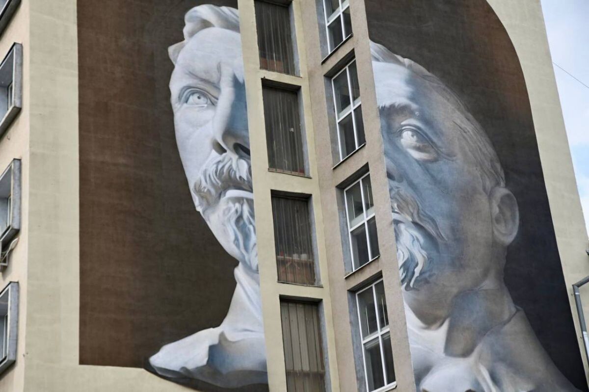 Я расцениваю муралы как акцию непозволительно громадного масштаба. Особенно учесть, что она первая. Здесь мания величия и вообще гигантомании соединились прямо в едином порыве. Обратите внимание, за редким исключением, но муралы появились на очень видных и крупных домах.