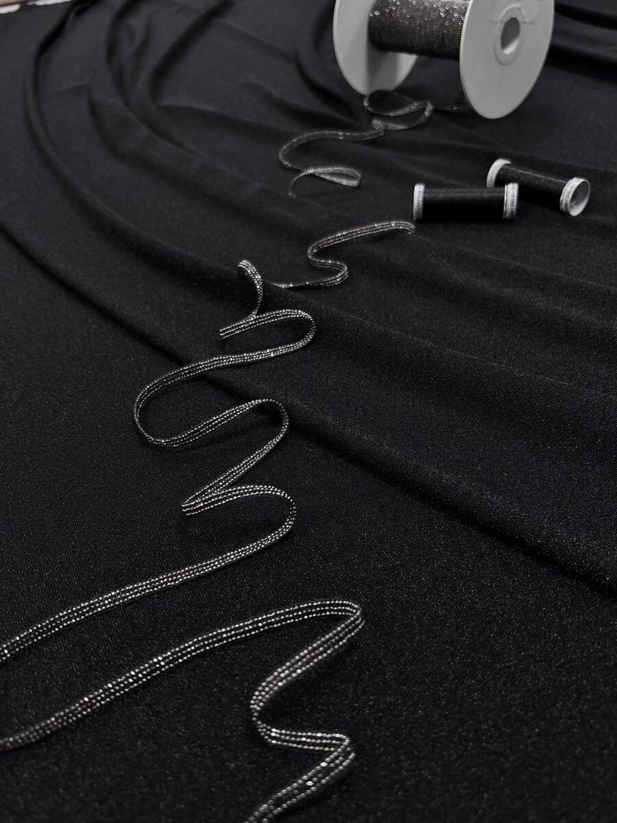 Абсолютно не колючий, в чёрном цвете. Хорошо тянется, тоненький Прекрасный вариант на платье, футболку, водолазку и т.д. Производство: Италия. Ширина: 1м 55см Состав: полиамид- 74%, люрекс- 23%, эластан- 3% Стоимость: 2650₽ за метр И в дополнение потрясающая тесьма мониль из нашего отдела фурнитуры. На первый заказ мы дарим Вам скидку 10% Для заказа пишите пожалуйста нам в телеграмм с волшебной фразой «Пришла из Дзен» Ссылка на наш телеграмм канал: Ждём Вас ежедневно, с 10:00 до 20:00, по адресу: г.Москва, ул Мневники, д.6, п.6
