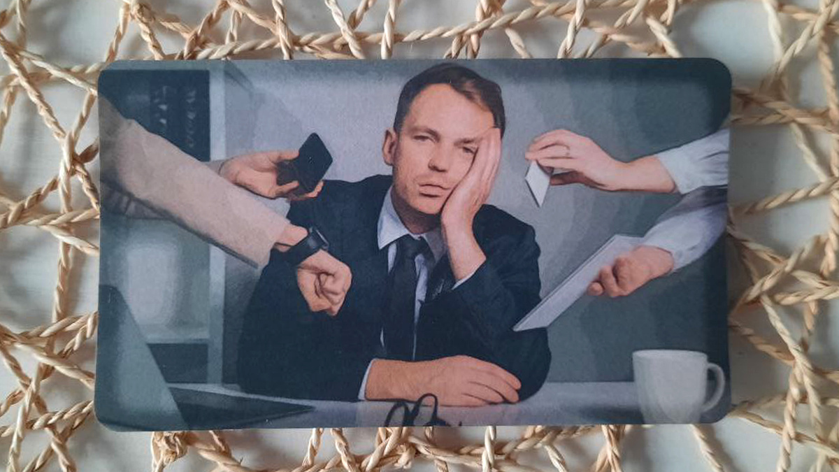 Перед вами карта, которая ярко иллюстрирует состояние перегруженности, рассеянного внимания и профессионального выгорания. Усталый мужчина, окруженный множеством гаджетов и требований, символизирует человека, который пытается успеть всё и сразу, но в итоге его силы на исходе. Снятые очки и опущенная голова говорят о желании отключиться от потока информации, который он больше не может перерабатывать. Эта карта указывает на то, что сегодня вы можете столкнуться с чрезмерной нагрузкой, цейтнотом и большим количеством параллельных задач. Вас могут буквально разрывать на части: коллеги, клиенты, начальство, личные дела требуют вашего внимания одновременно. Это день, когда риск потерять фокус и работоспособность из-за усталости и стресса особенно высок. Вы можете чувствовать себя как тот мужчина — истощенным и неспособным дать адекватный ответ на все поступающие запросы. Ваша главная задача сегодня — не успеть больше, а грамотно расставить приоритеты и снизить нагрузку. Вместо того чтобы реа