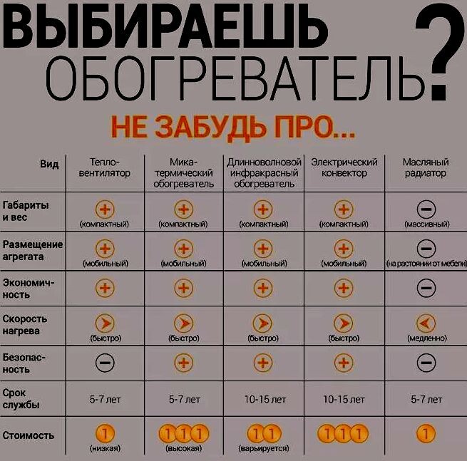 Современные бытовые обогреватели: основные типы и их сравнительные характеристики