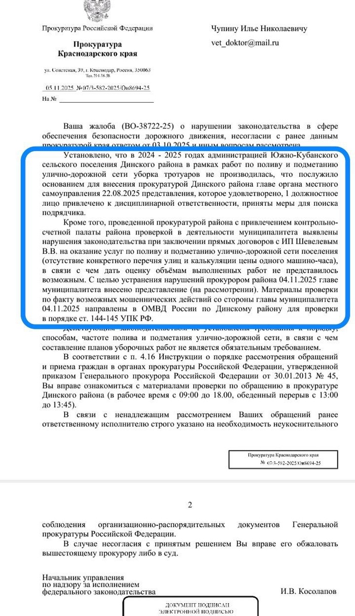 Появление Конных полицейских патрулей в Южном выглядит абсолютно закономерным и логичным решением. Ведь, исходя из отзывов жителей о непролазной грязи, использование пеших нарядов попросту нецелесообразно – участковый рискует увязнуть в грязи с головой. Вариант с лошадьми – единственно верный. Как следует из официального ответа прокуратуры, администрация поселения в 2024-2025 годах работы по уборке тротуаров не производила. Кроме того, в деятельности муниципалитета выявлены нарушения при заключении договоров, а материалы по факту возможных мошеннических действий уже направлены в ОМВД. Лично я с замиранием сердца жду наступления снежной зимы. И, основываясь на текущей логике развития правоохранительной деятельности ни капли не удивлюсь, если зимой встречу на тротуаре полицейский патруль на на санях с собачьей упряжке. Главное, чтобы договор на их содержание был заключен с соблюдением всех требований и чёткой калькуляцией цены одного собако-часа.