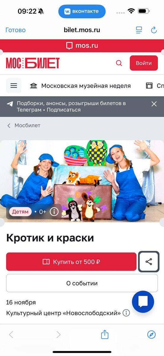 Спектакль «Кротик и краски» 16 ноября 11.00 🧳 Билеты https://bilet.mos.ru/event/276302257/ Для дошкольников М. Новослободская #театр #чемоданус #длядетей #кудапойтисребенком