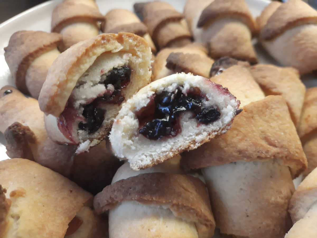 Серый и скучный ноябрь. На дворе холодный дождь, промозглый ветер. А у нас, дачников-садоводов заготовлено варенье. Ароматное, сладкое, солнечное. Привет жаркого лета. Вот и побалуем себя выпечкой с этим самым вареньем. Для этого простого рецепта подойдет любое ягодное варенье: вишневое без косточек, малиновое, земляничное, смородиновое, брусничное. Лучше брать с кислинкой - тогда вкус получается интереснее. Варенье должно быть густым, без жидкого сиропа. Если сироп есть, варенье можно выложить на сито и подождать, чтобы остались только ягоды. Для теста: 200 граммов сметаны 200 граммов маргарина или сливочного масла (на маргарине получаются более рассыпчатые) 3 стакана муки 1 стакан сахарного песка Тесто замешиваем, оно должно получиться крутое. Делим на четыре равные части, каждую раскатываем в круг. Должна получиться лепешка диаметром около 30 см. Делим круг на 12 частей, как на фото. Кладем начинку, скручиваем рогалики. Выпекать при температуре 180 градусов. Далеко не все варят вар