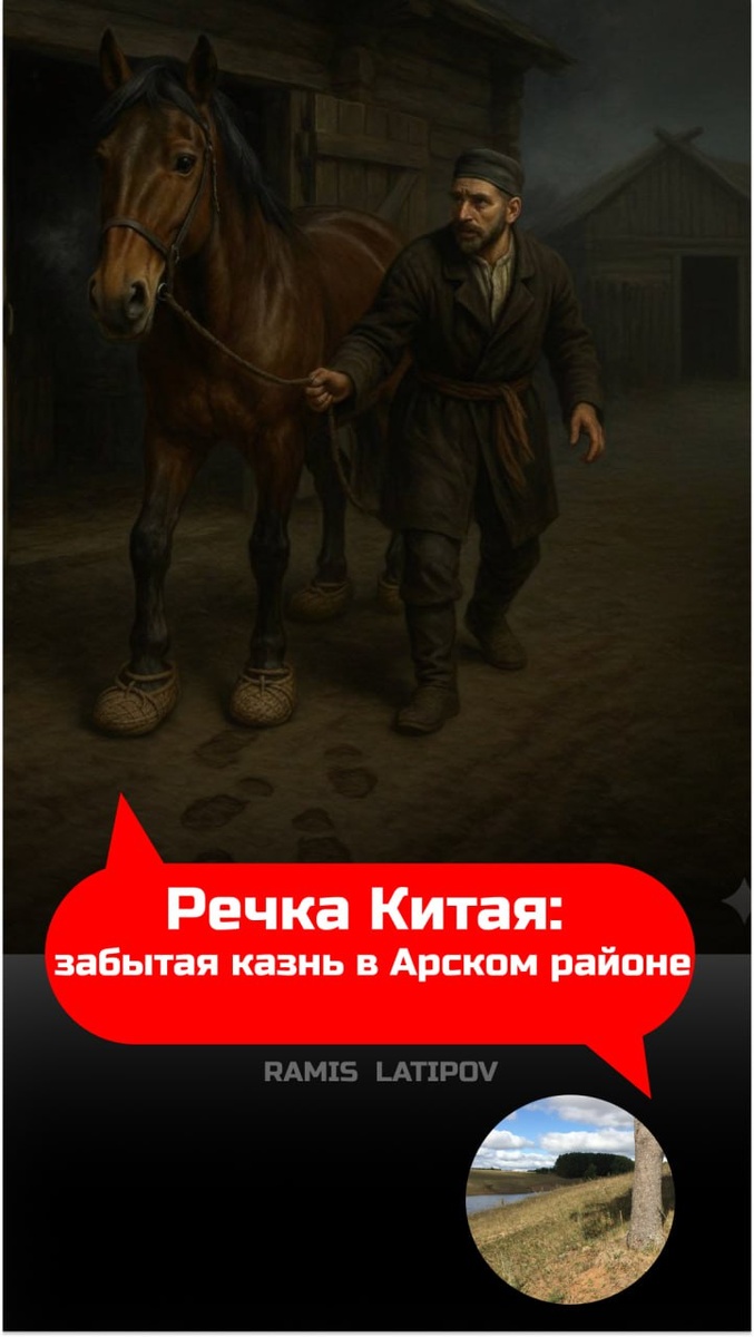 В давние времена для разных видов преступлений существовали свои, особые виды казни. Например, пиратов обычно вешали на рее, а вот за измену и шпионство в Волжской Булгарии человека привязывали за руки и ноги и раскрывали спину. Эта казнь даже осталась в языке как фразеологизм: «сыртыңны ярам, аркаңны ярам» – «раскрою спину». И сейчас, например, мальчишкам за озорство могут крикнуть: «Малай актыклары, сыртыгызны ярам!». А вот конокрадов могли заживо хоронить, ведь тот, кто оставался без лошади, мог потерять всё состояние. Один из таких случаев зафиксирован в деревне Верхняя Ура, это в Арском районе. В начале XX века житель этой деревни по имени Габдрахман, по прозвищу Китай, украл коня у богача в соседней деревне. Он был приезжим из Центральной Азии. В Верхней Уре таких мигрантов было много: рядом, в Нижней Уре, работали ткацкие предприятия, и они приходили туда на заработки. У конокрадов был обычай: они надевали на копыта лошади лапти задом наперёд, чтобы запутать следы. Когда начин