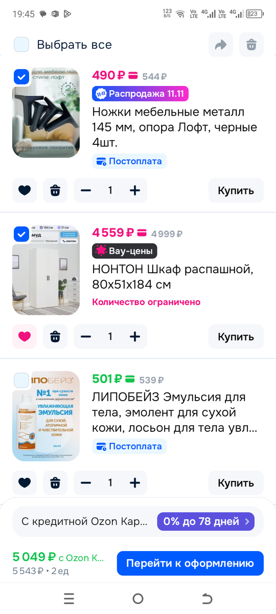 Итоговая цифра впечатляет. А ведь шкаф стоил меньше 5к. (Можете от итога отнять 490₽ за ножки). Т.е. продают они за 4559₽, а в итоге получается 17к за 2 шкафа. Обалдеть, какая "выгода"!