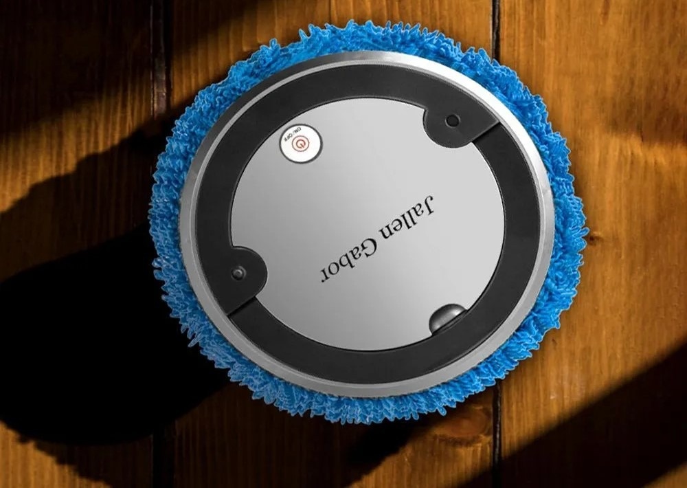 Чем обычный робот-пылесос отличается от робота-полотёра? Робот-пылесос с функцией влажной уборки в первую очередь всё равно пылесос. Его основная задача — сбор сухого мусора. Для протирания пола обычно используется салфетка из микрофибры, крепящаяся рядом с соплом. Робот-полотёр создан как раз для качественной влажной уборки. Вода поступает дозированно через форсунки на салфетки или непосредственно на пол. Уборка происходит за счёт активного воздействия вибрирующей или вращающейся платформы. Такие движения можно сравнить с мытьем обычной шваброй. Пол отмывается, а не просто увлажняется. Полотёр без проблем удалит старые пятна, следы от обуви или пролитые напитки. Эти роботы-полотёры имеют простую навигацию и требуют довольно активного участия владельца (например, переноса между комнатами или смачивания салфеток), но всё равно справляются со своей задачей лучше недорогого пылесоса с функцией влажной уборки. Робот-полотер Jallen Gabor прост и дешев. У него один вращающийся (до 100 оборо