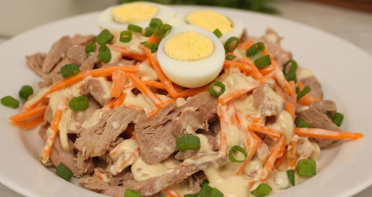 Салаты с добавлением мяса пользуются большой популярностью благодаря своей питательности и насыщенному вкусу. Данный рецепт отлично подойдет для тех, кто не любит консервированный горошек в салатах. А так же станет вкусным дополнением к любому столу. Ингредиенты: Мясо – 500 грамм (подойдет любое, птица, говядина, свинина) Картофель – 3 шт. среднего размера Морковь – 1 шт. среднего размера Соленые огурцы – 2 шт. среднего размера Свежий огурец – 1 шт. среднего размера Яйца – 3 шт. Лук репчатый – 1 шт. небольшого размера Яблоко зеленое – 1шт. небольшого размера Майонез – по вкусу Соль - по вкусу Перец черный молотый – по вкусу Приготовление: Мясо отвариваем в слегка подсоленной воде до готовности, остужаем и нарезаем небольшим кубиком. Картофель и морковь отвариваем в мундире (можно и запечь в духовке, в фольге), остужаем, очищаем и нарезаем небольшим кубиком. Яйца отвариваем, очищаем и нарезаем таким же кубиком, как и остальные ингредиенты. Соленые и свежие огурцы, так же нарезаем мелким