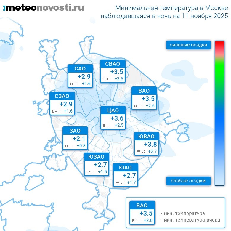 #за12часов #ночь Прошедшая ночь на 11 ноября оказалась на 1.0°C теплее предыдущей